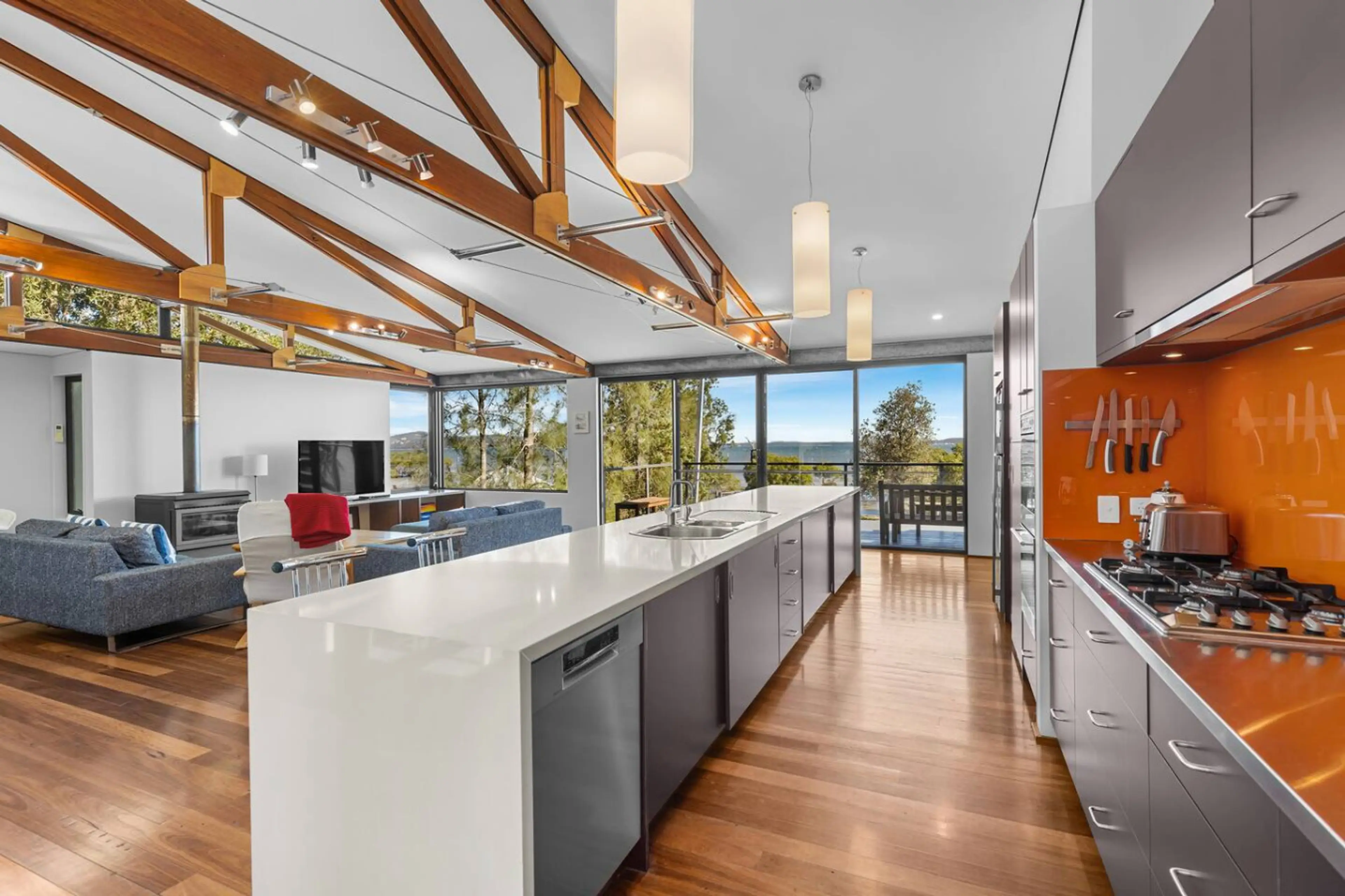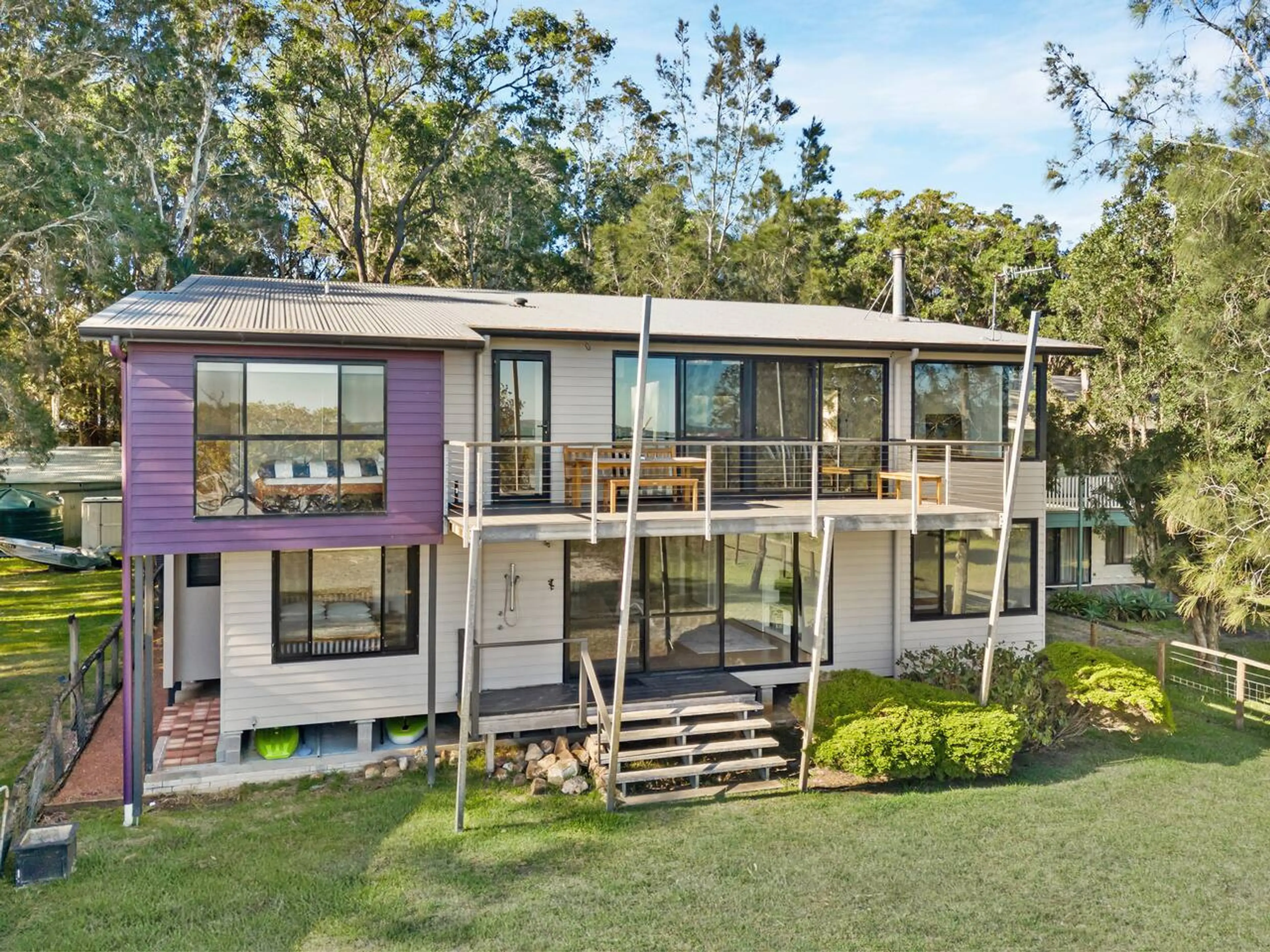 Architecturally designed absolute beachfront home in secluded Pindimar, Port Stephens. Wake to panoramic bay views, sea breezes and the sound of waves at your doorstep. This spacious 5-bedroom retreat offers light-filled living, expansive decks, direct beach access and peaceful bush surrounds - perf...